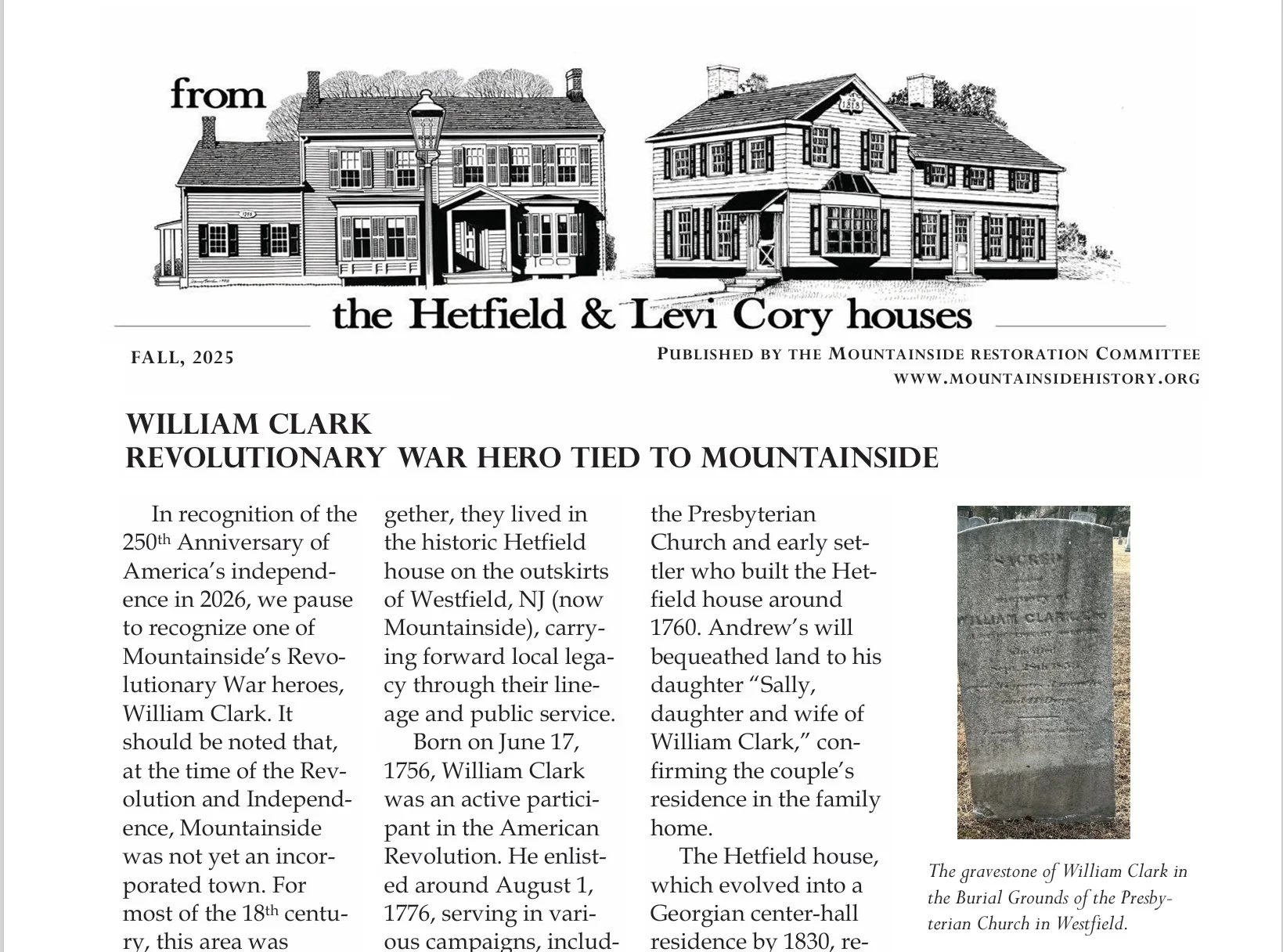 Learn more about Mountainside’s historical houses and history by reading past issues of our annual newsletter, “from The Hetfield & Levi Cory Houses”.
